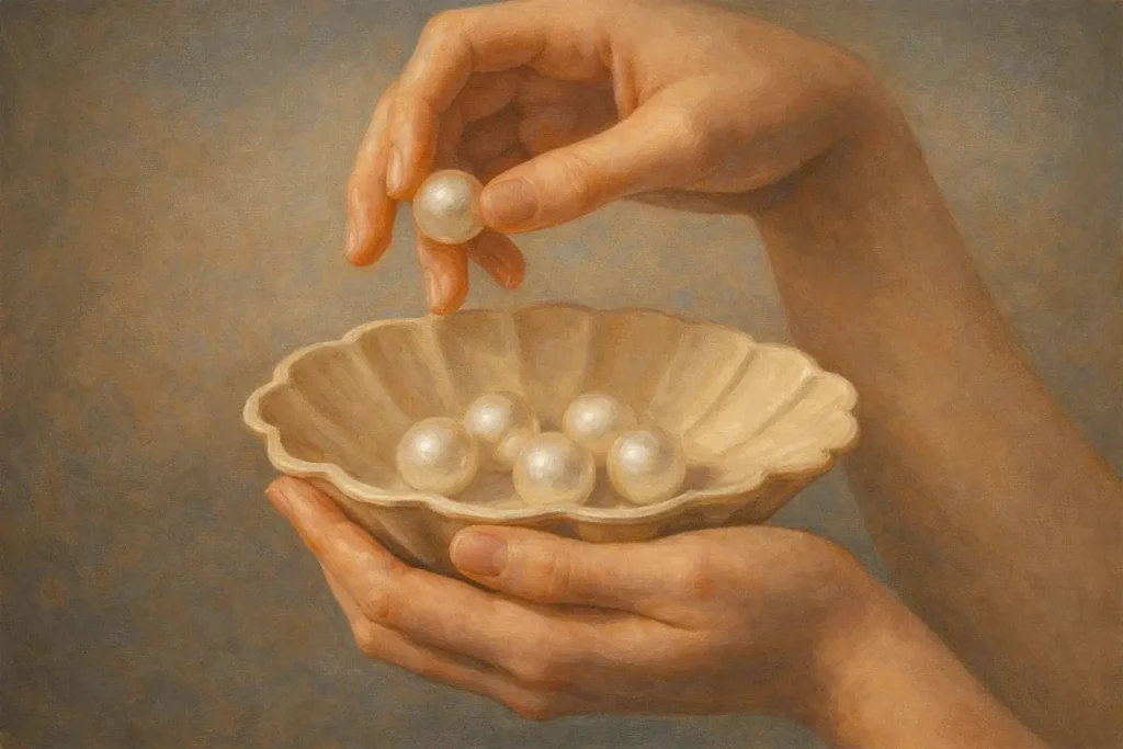 Chitra-Persönlichkeiten benötigen bestimmte Herausforderungen oder „Schmerz“, um Illusionen zu überwinden und spirituell zu wachsen – wie eine Perle, die im Inneren einer Muschel durch Reibung entsteht.
